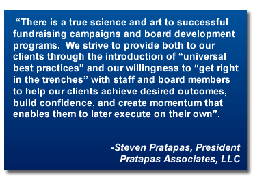 A wealth of information is available to help your organization find the answers you need. If your organization is looking for an experienced, full-service consulting firm that offers proven practical solutions to address your current or future resource development needs, we hope you will consider Pratapas Associates, LLC. |